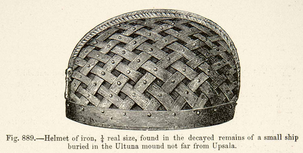 1889 Wood Engraving Helmet Iron Ship Ultuna Mound Upsala Viking Age XGYA7