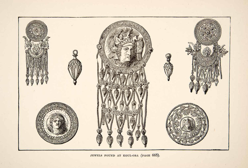 1890 Print Kul-Oba Archaeological Ancient Jewelry Crimea Ukraine Pendents XHB2
