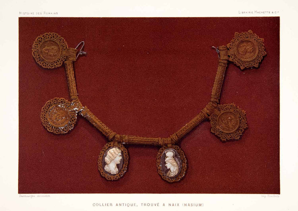 1890 Chromolithograph Ancient Roman Necklace Collar Jewelry Nasium Naix XHB3