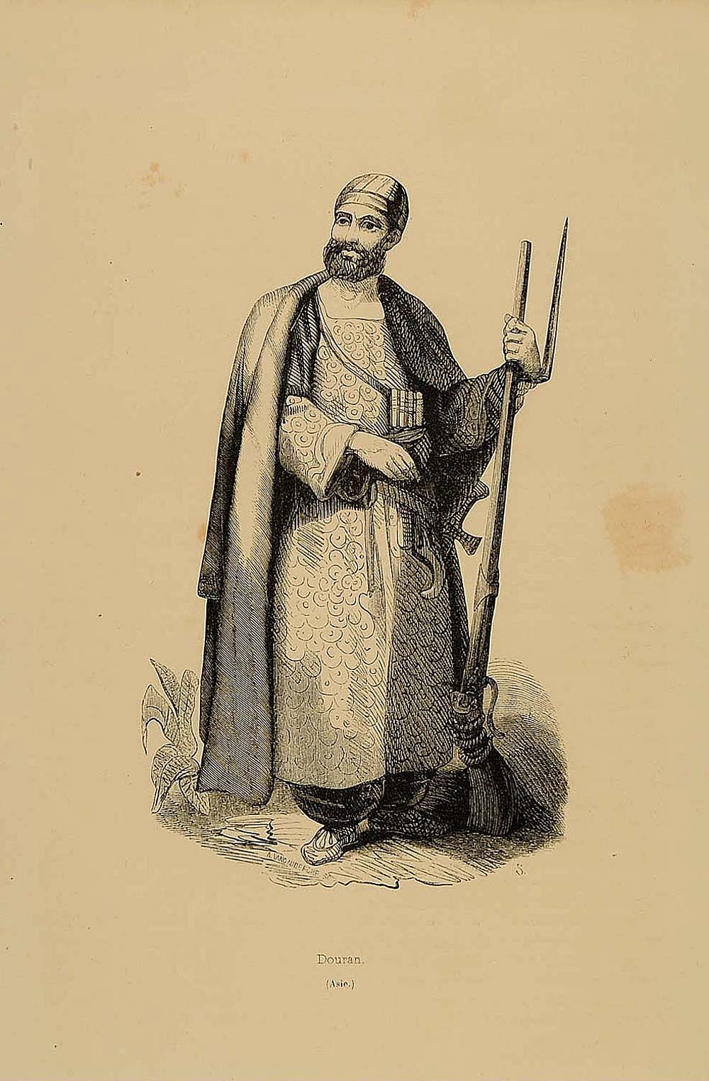 1843 Engraving Costume Douran Man Soldier Warrior Gun - ORIGINAL CW2
