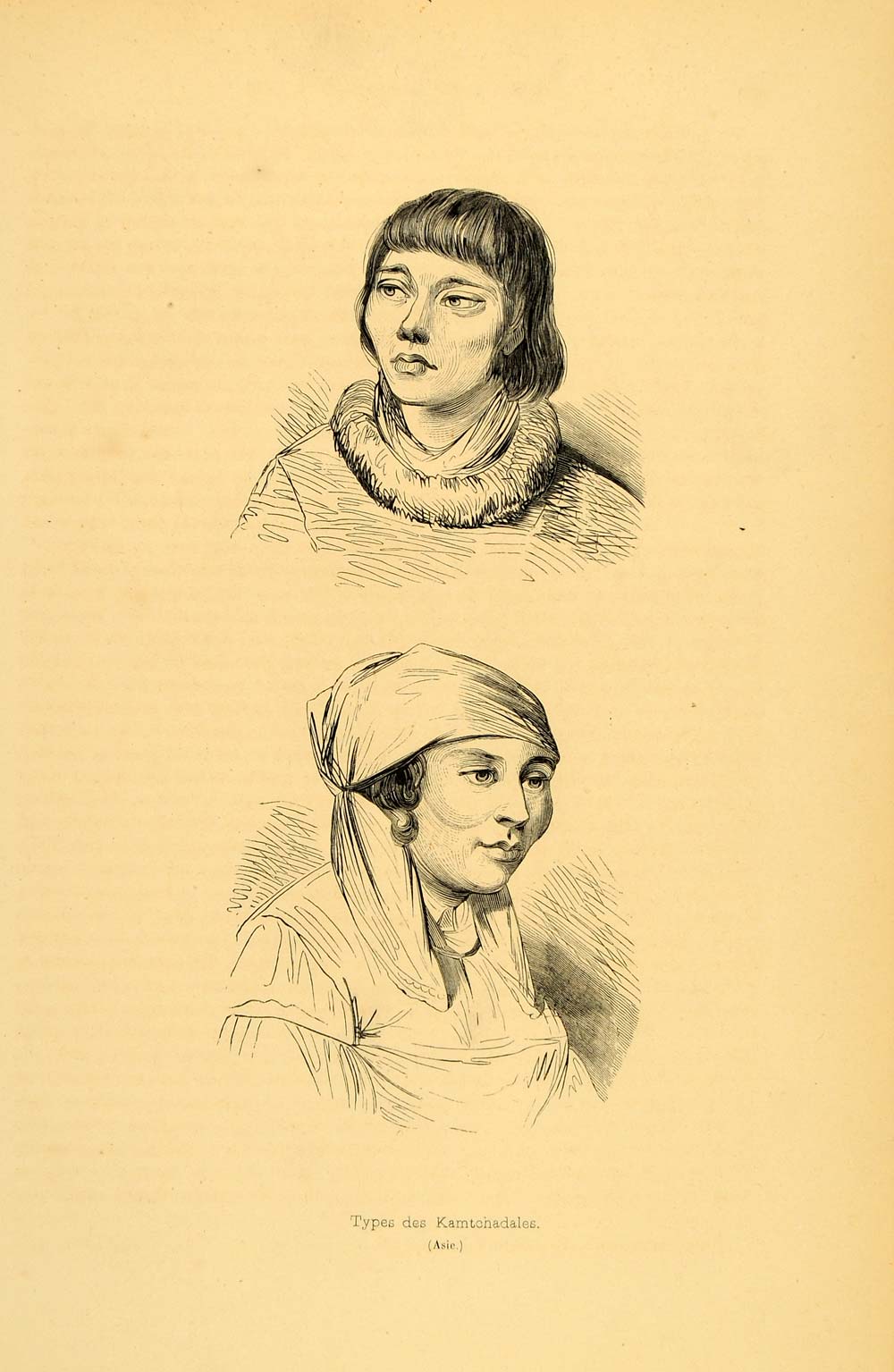 1843 Engraving Costume Itelmen Kamchadal Man Woman - ORIGINAL CW2