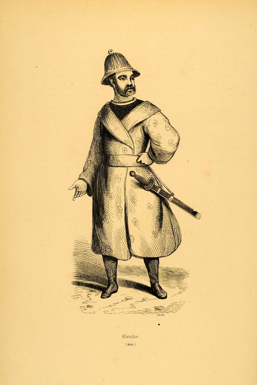 1843 Engraving Costume Hat Eleuth Elyut Man Sword Asia - ORIGINAL CW2