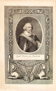 Period Paper is pleased to offer an extremely rare and impressive early eighteenth century collection of biographies and portrait engravings and etchings, produced in Leipzig, Germany in 1721 and 1722. Included are notable monarchs, rulers, religious figures, and members of notable Houses throughout Europe, including several genealogical charts of dynastic lines, spanning the sixteenth to early eighteenth centuries. The collection is comprised of exquisitely engraved and etched copper portrait plates framed by varying decorative motifs, all engraved by Johann Friedrich Rosbach. Many of the portraits include separate biographical pieces ranging in length from a single paragraph to several pages for more notable European monarchs and emperors. If present, the accompanying text is in German and is composed of beautiful woodcut text, with most pages containing elegantly etched drop cap initials, head-and tail-pieces and vignettes. The superb, folio-sized stock upon which the collection is engraved and etched employed the latest advances in eighteenth century paper making and highlights the era's predilection for strong, lightly sized paper with a fine structure and smooth surface. The paper's characteristics are thus similar to Japanese Gampi, and the result is well-preserved and crisp images that exceptionally capture Rosbach's fluid and sharp line work. This collection represents a unique opportunity to collect a valuable part of European history stunningly composed and illustrated.
