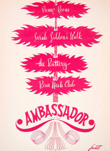 1953 Lithograph Ambassador Hotel Chicago Beau Nash Club Sarah Siddon Pump AEFA1