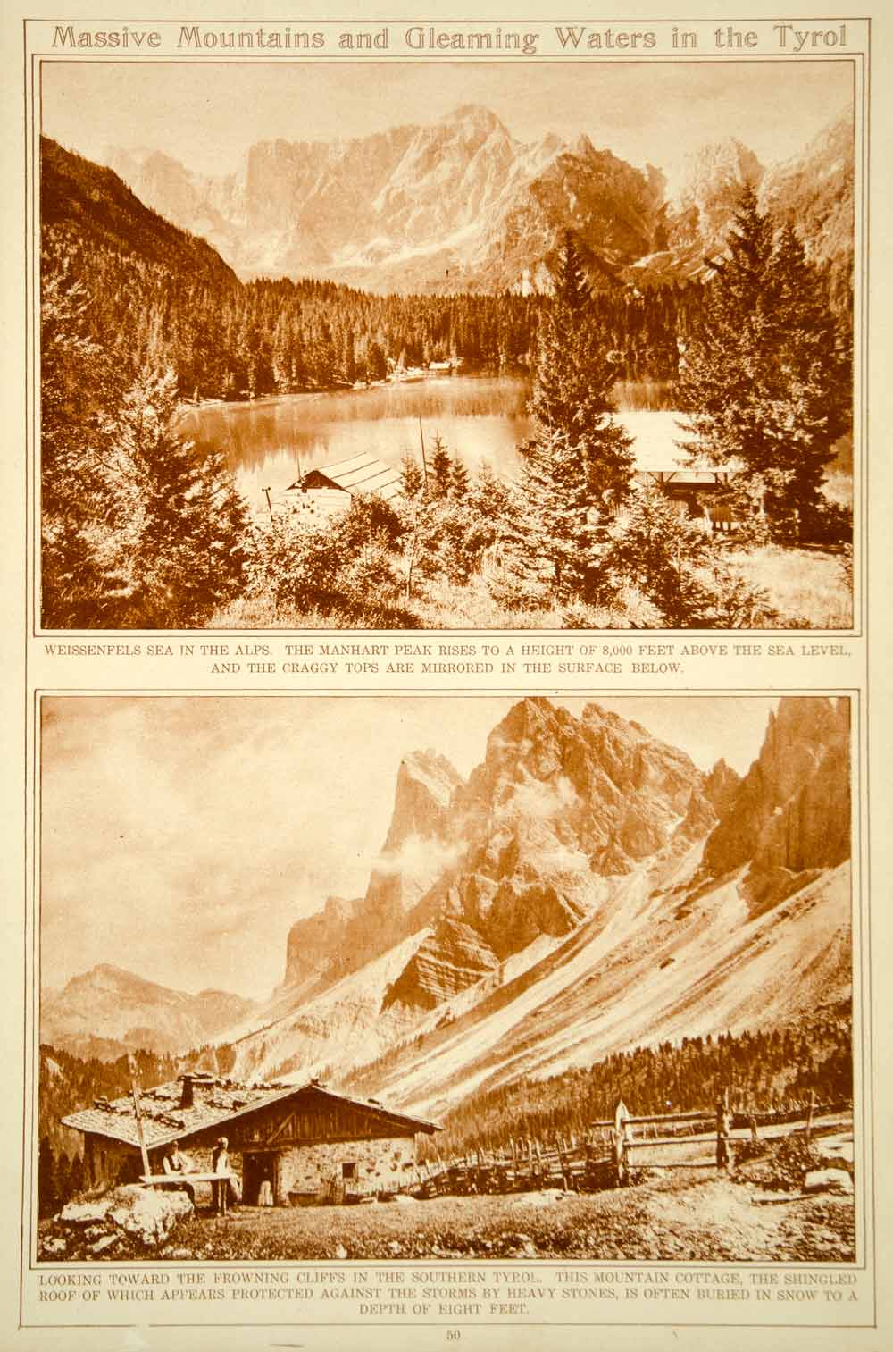 This is an original 1923 sepia rotogravure with two views of the Tyrolean landscape.