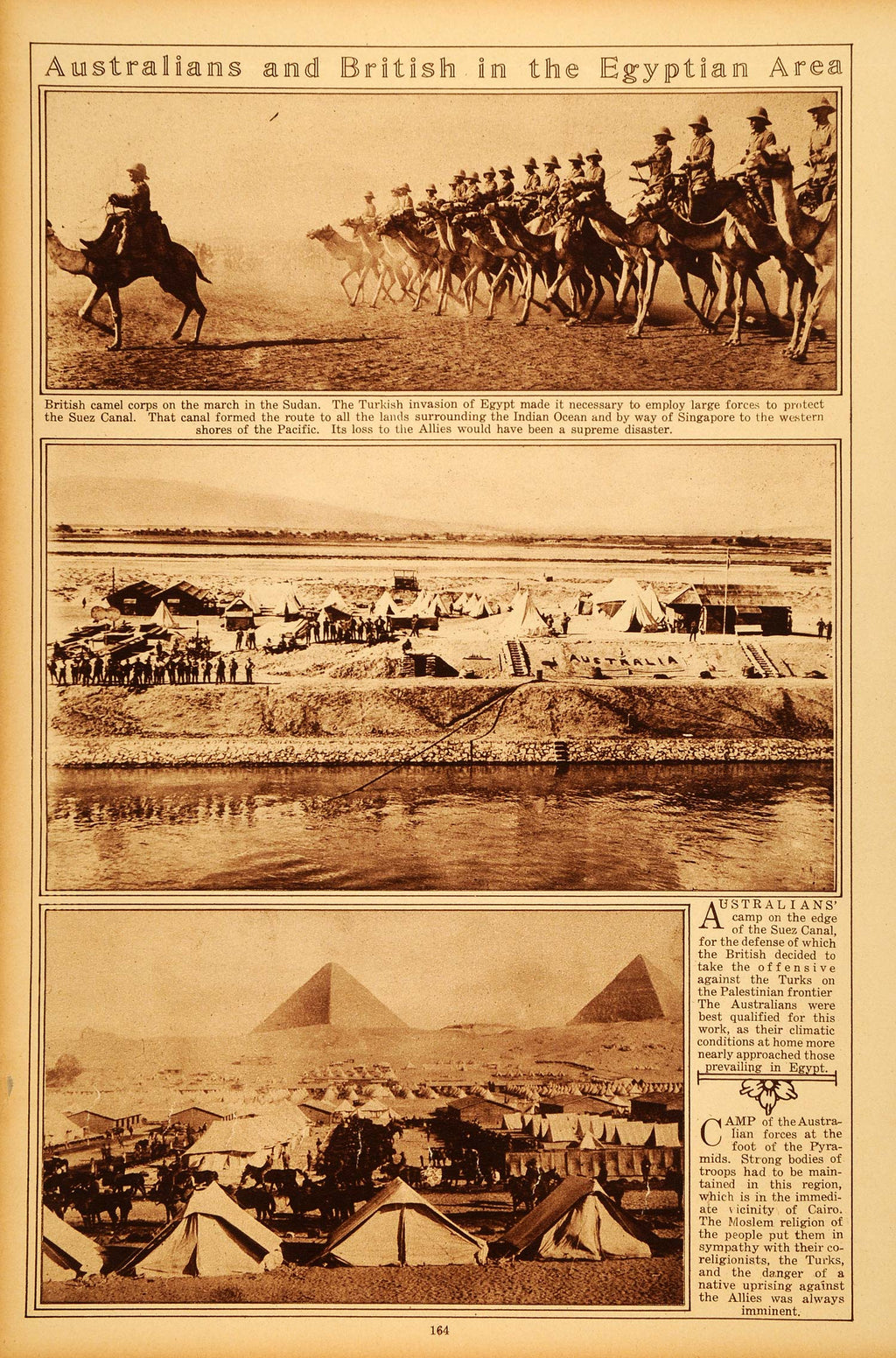 1922 Rotogravure World War I Egypt Pyramids British Camel Corps Sudan Suez Canal