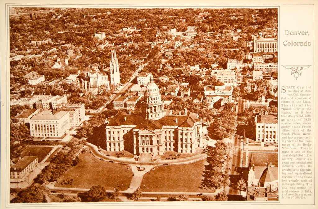 1923 Rotogravure Denver State Capitol Building Aerial Bird's Eye View Historic