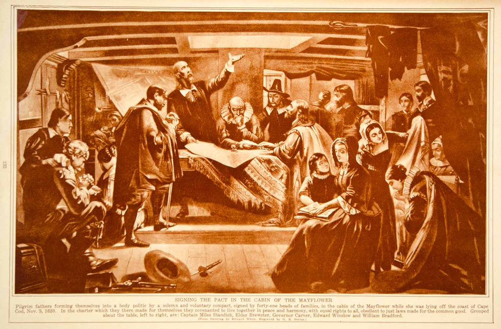 1923 Rotogravure Mayflower Compact Signing Pilgrim Fathers Edward White Art