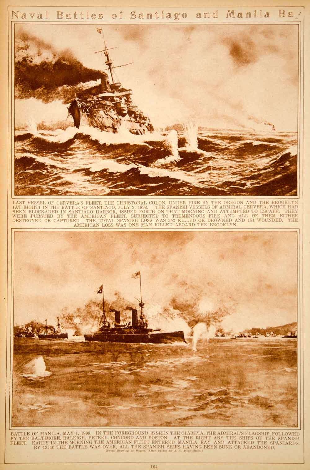 1923 Rotogravure Spanish American War Naval Battles Santiago Cuba Manila Bay Art