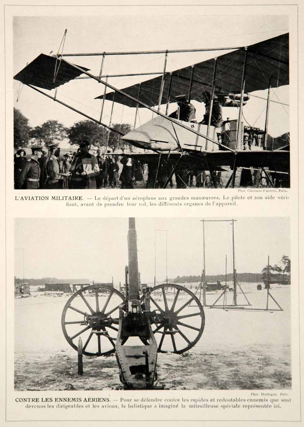 1913 Print Imperial German Army Military Airplane Anti-Aircraft Gun Historic WWI