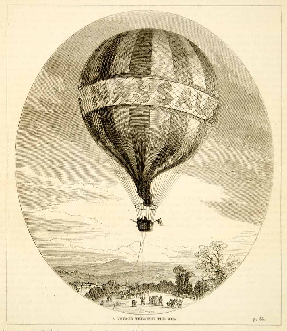 1876 Wood Engraving The Great Nassau Hot Air Balloon Flight Charles Green TWW1