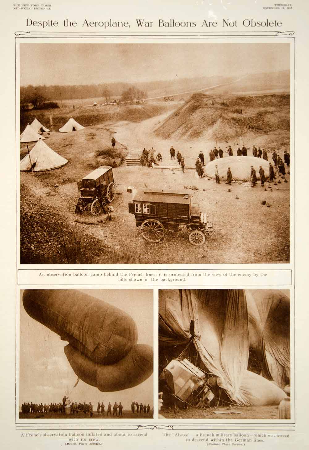 1915 Rotogravure World War I French Military Hot Air Balloons Observation YNY2