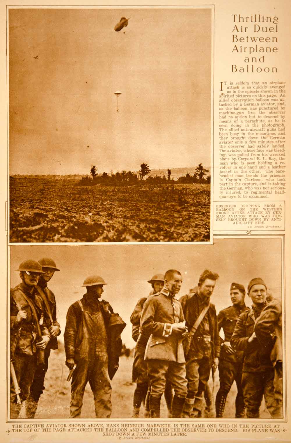 1919 Rotogravure WWI Air Fight Observation Balloon Hans Heinrich Marwede YNY4