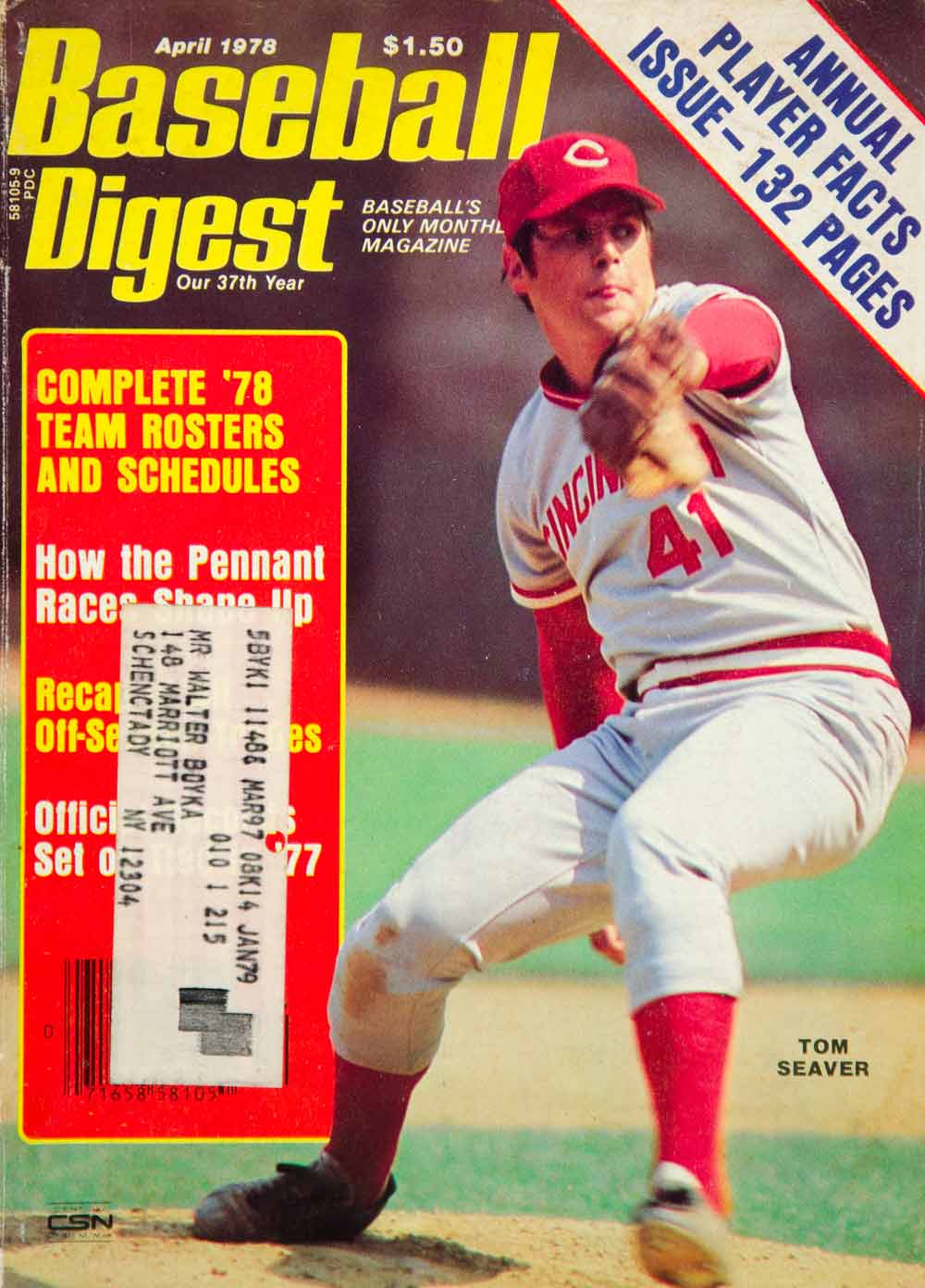 1978 Cover Baseball Digest Tom Seaver Cincinnati Reds Major League Pitcher YBD1