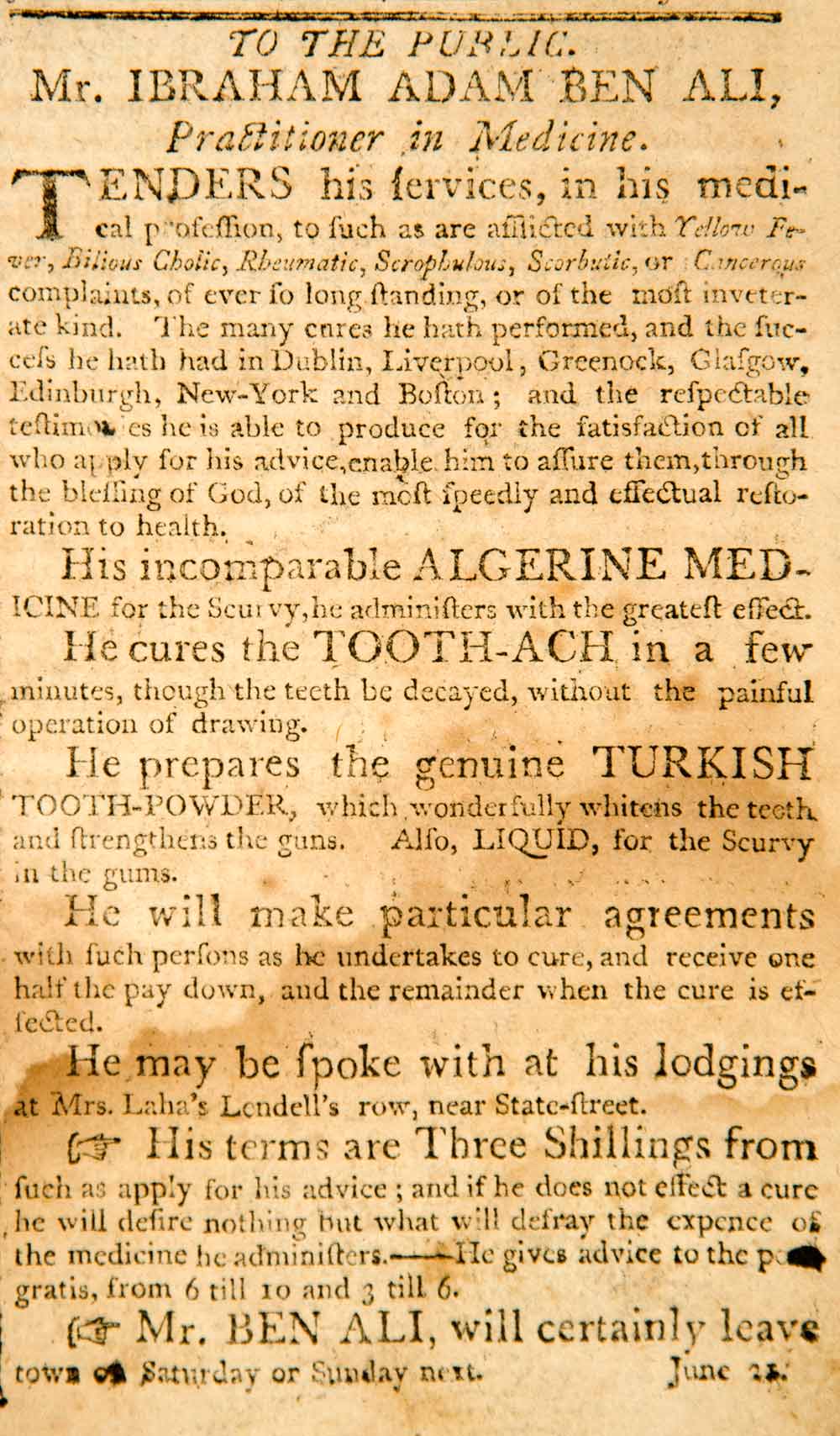 1798 Ad Ibraham Adam Ben Ali Doctor Medicine Turkish Toow-Powder Scurvy YJR1