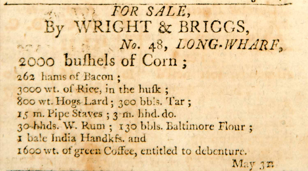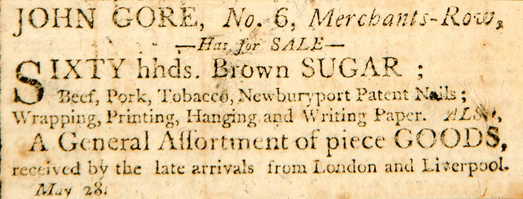 1798 Ad John Gore Merchant Row Boston Brown Sugar Agriculture Produce Crop YJR1