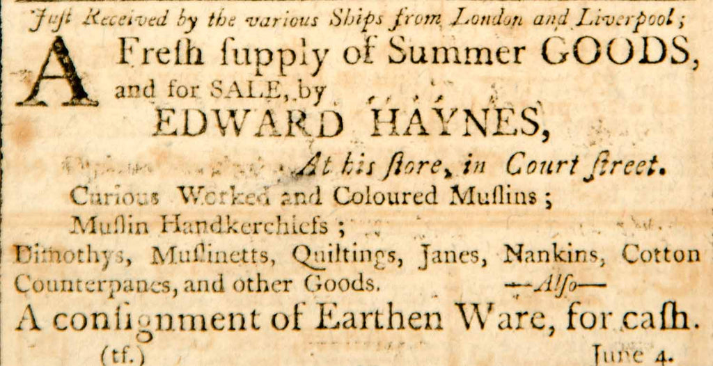 1798 Ad Fresh Supply Summer Good Produce Edward Haynes Boston Textile YJR1