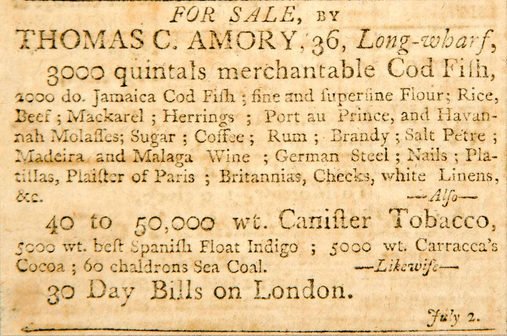 1798 Ad Codfish Flour Rice Tobacco Fish Herring Goods Produce Thomas C YJR1
