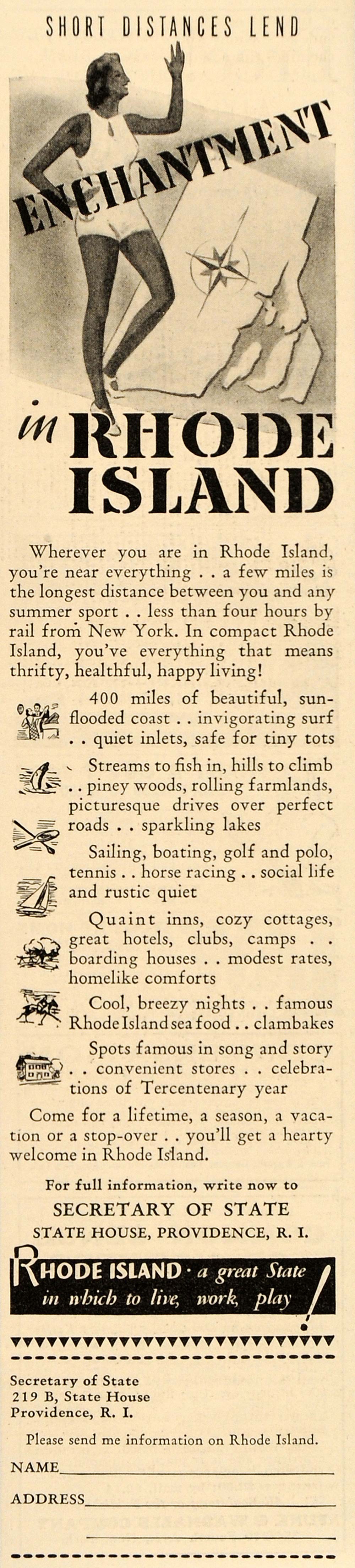 1936 Vintage Ad Rhode Island Travel Vacation State - ORIGINAL ADVERTISING LD1