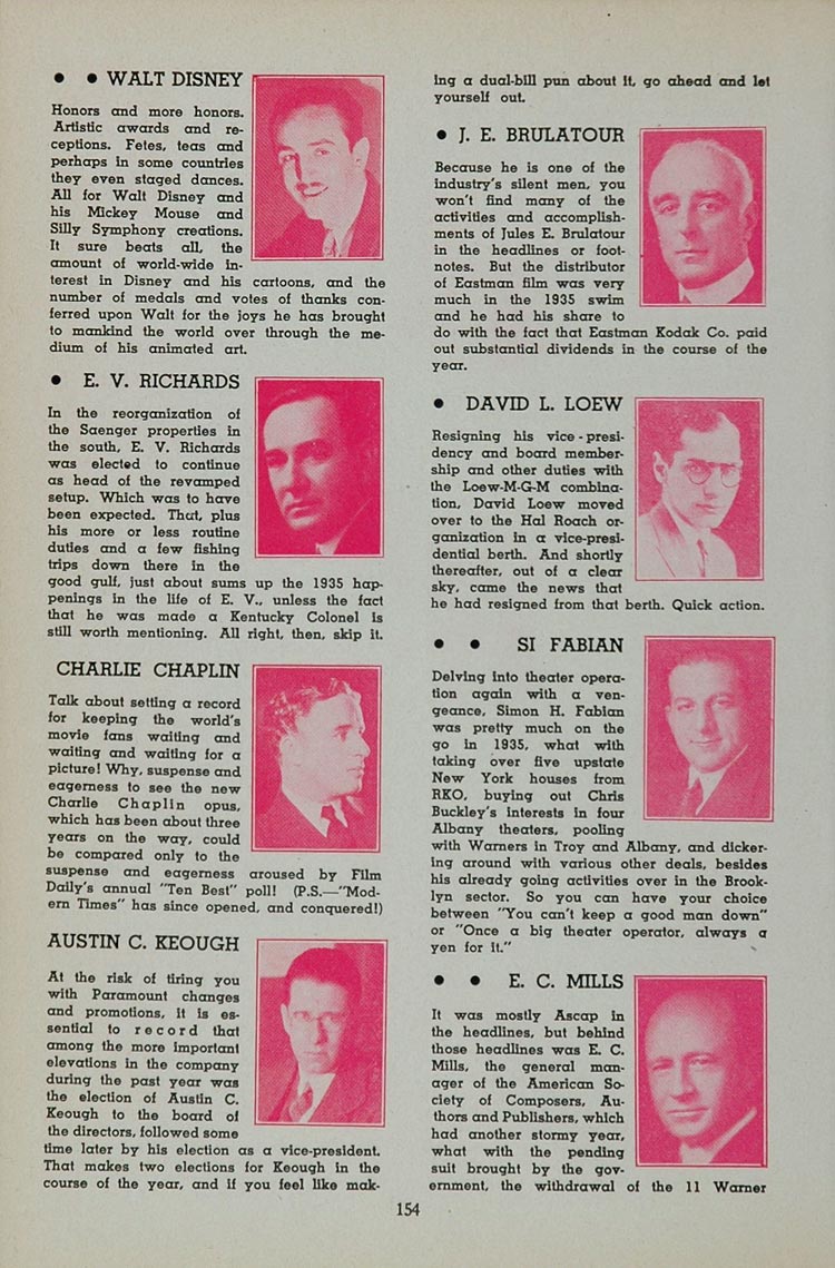 1936 Walt Disney Charlie Chaplin Movie Industry Print - ORIGINAL MOVIE