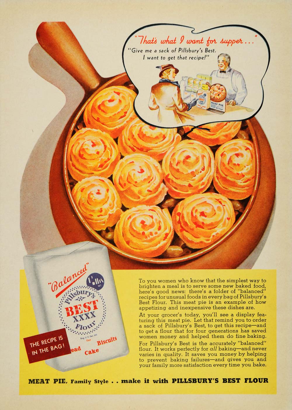 1936 Vintage Ad Pillsbury's Best Flour Meat Pie Grocer - ORIGINAL PTS1