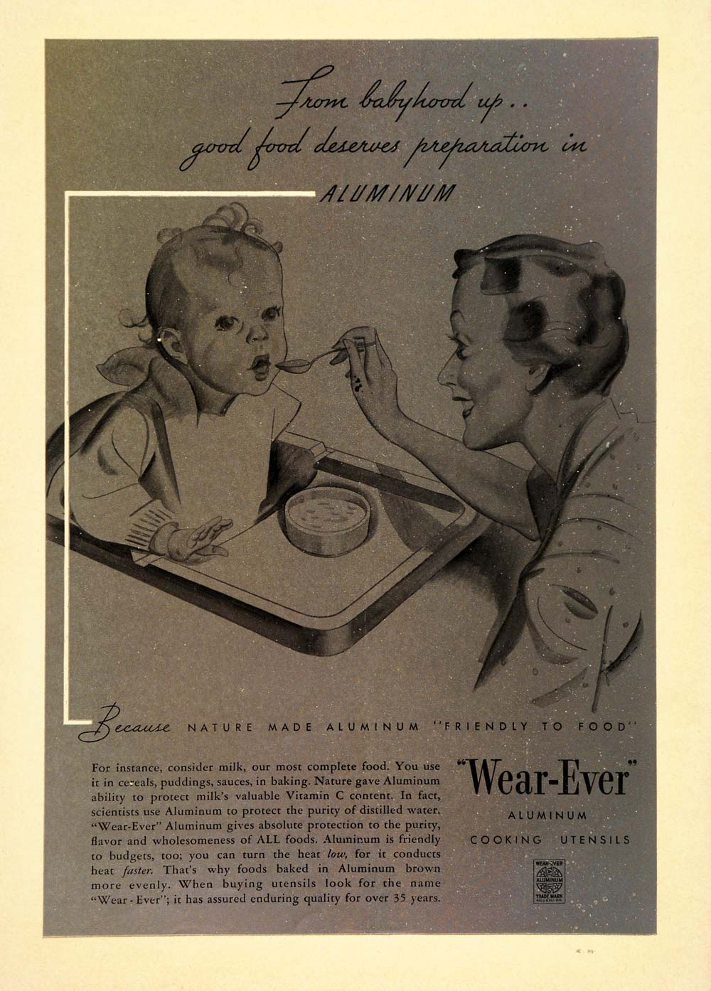 1936 Vintage Ad Wearever Aluminum Cookware Baby Mother - ORIGINAL PTS1
