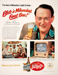 This is an original 1951 color print ad for Blatz Beer by the Blatz Brewing Company in Milwaukee, Wisconsin. This was endorsed by William Gargan from the Amos 'n' Andy Show.