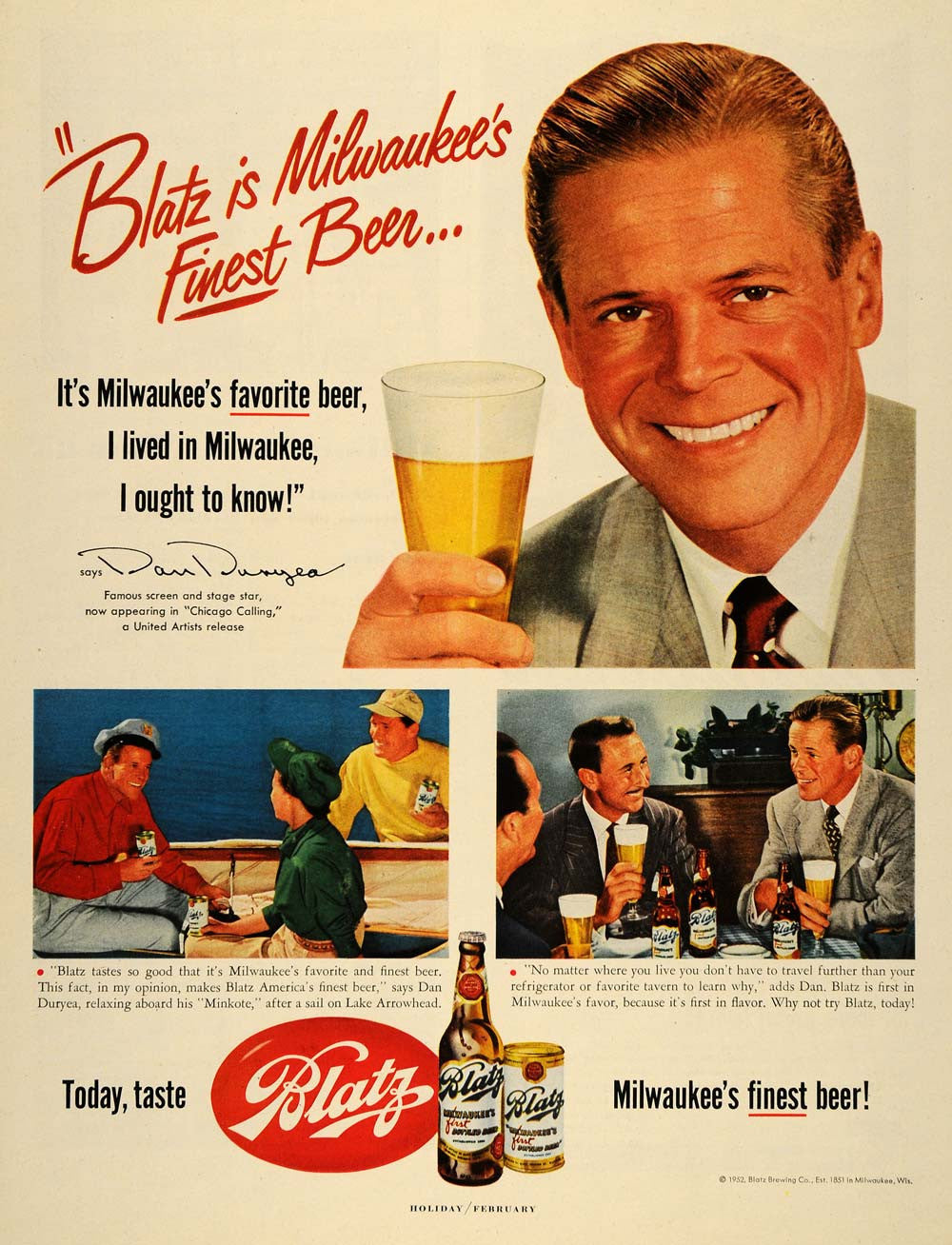 1952 Ad Blatz Brewing Co. Beer Milwaukee Dan Duryea - ORIGINAL ADVERTISING HDL1
