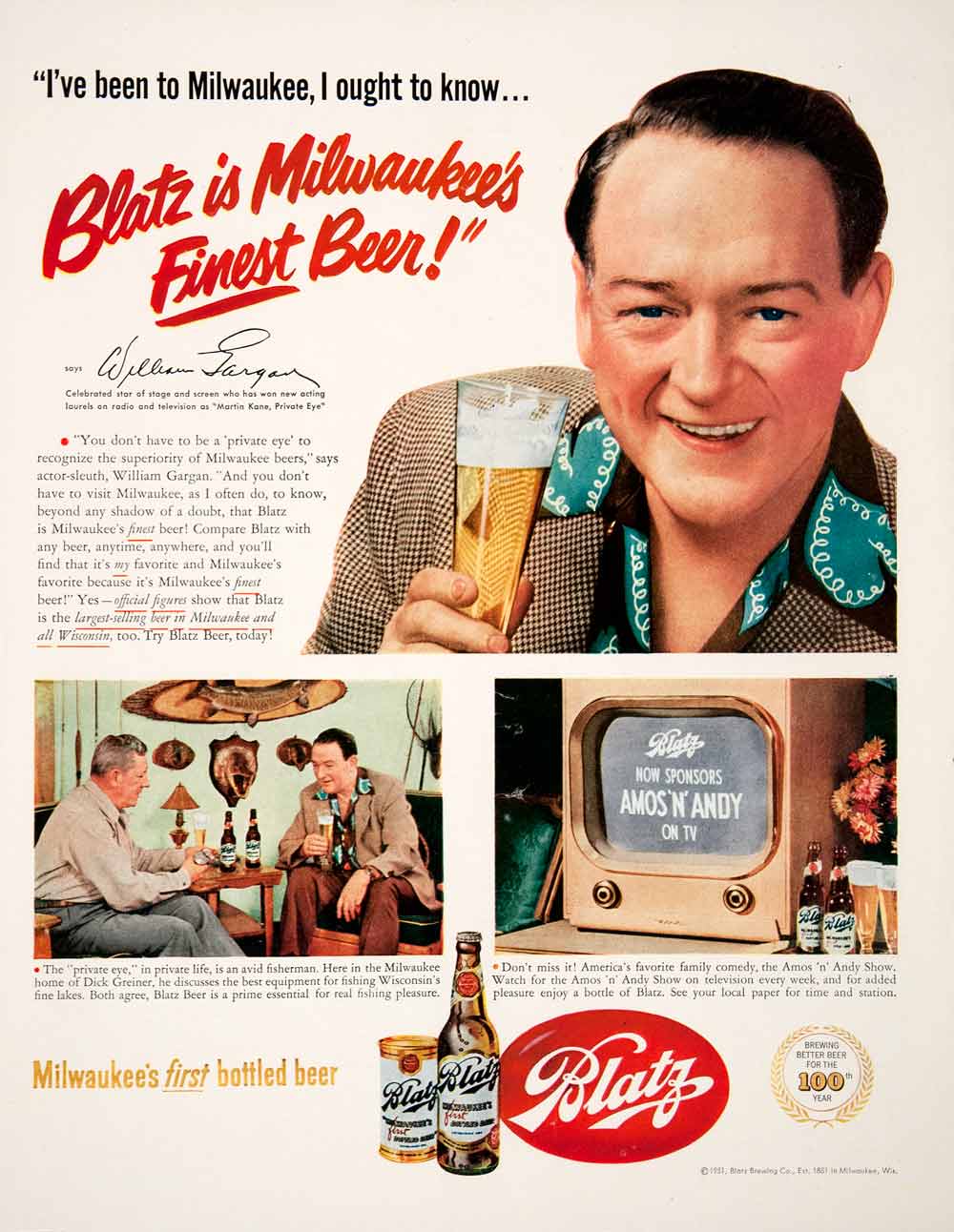 1951 Ad Blatz Beer Brewing Milwaukee William Gargan Amos Andy Show First COLL2