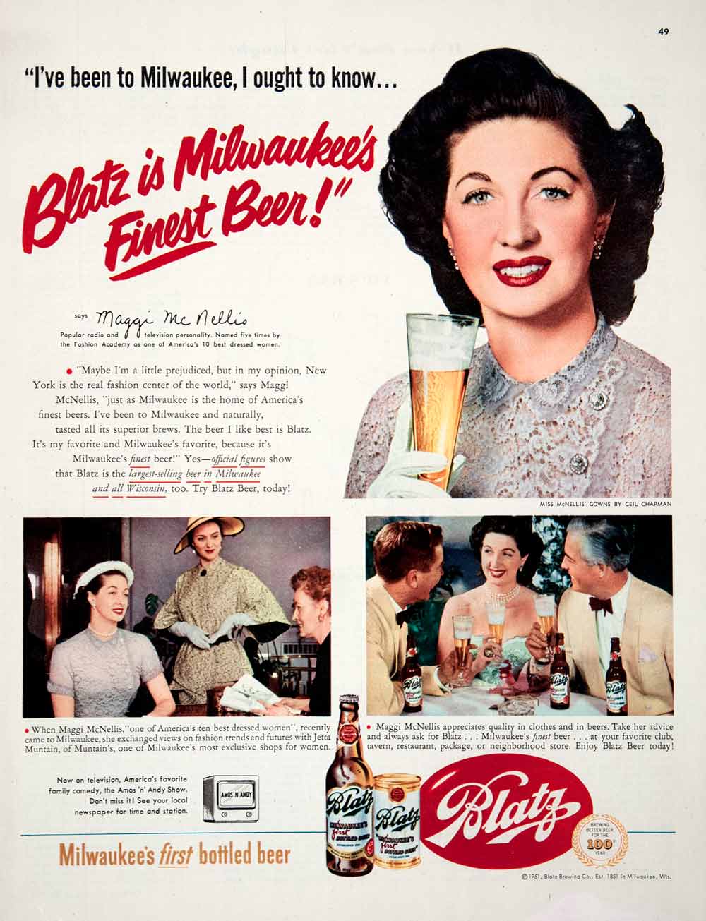 1951 Ad Blatz Beer Maggi McNellis Radio Fashion Jetta Muntain Ceil Chapman COLL3