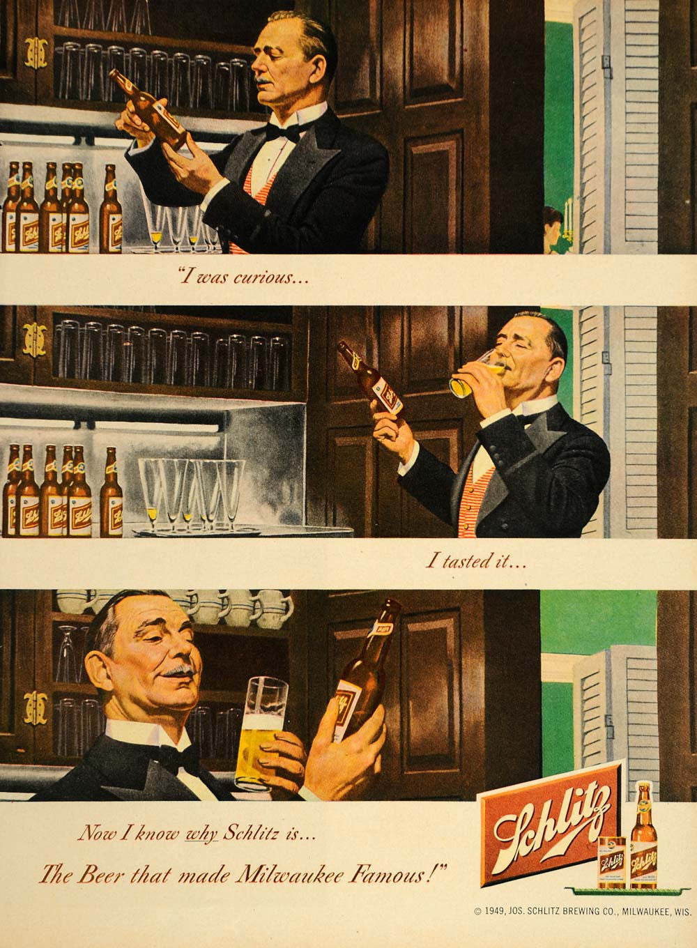 1949 Ad Schlitz Beer Glasses Brewing Milwaukee Bottle - ORIGINAL ADVERTISING TM1