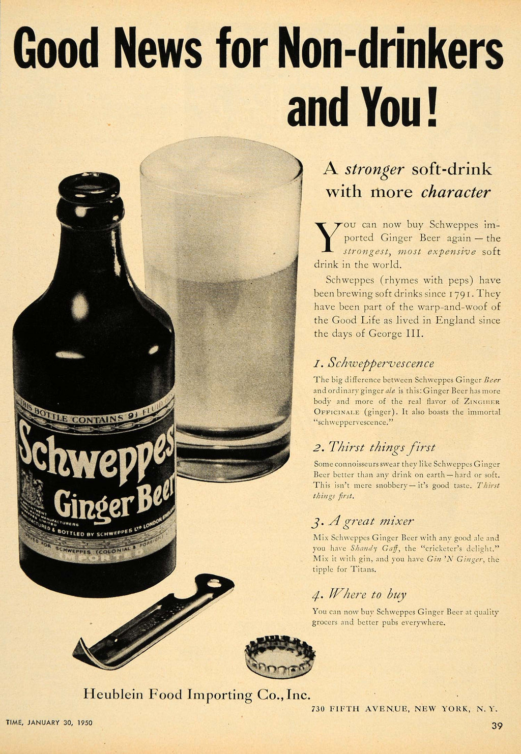 1950 Ad Schweppes Ginger Beer Heublein Food Importing - ORIGINAL ADVERTISING TM3