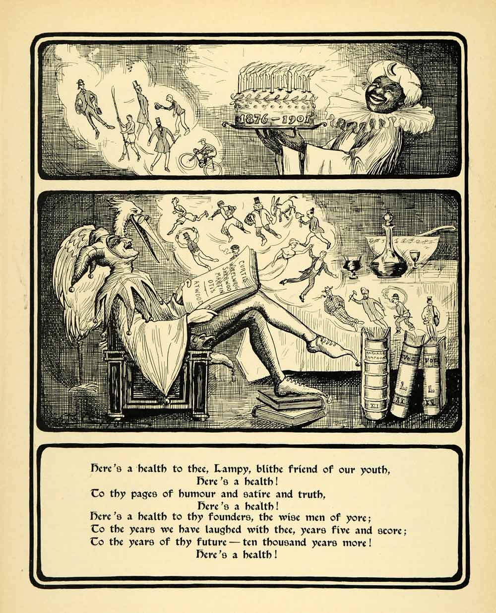 1901 Print Harvard Lampoon 25th Anniversary Lampy Threskey Negro Minstrel HVD1