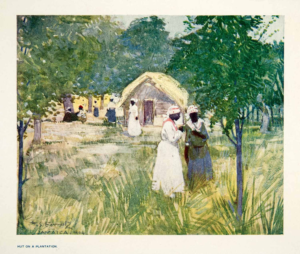 1906 Color Print Hut Plantation Jamaica Indigenous People Black Americana XGZA8