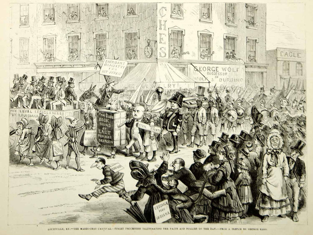 1875 Wood Engraving Louisville Mardi Gras Carnival Street Parade Black Americana