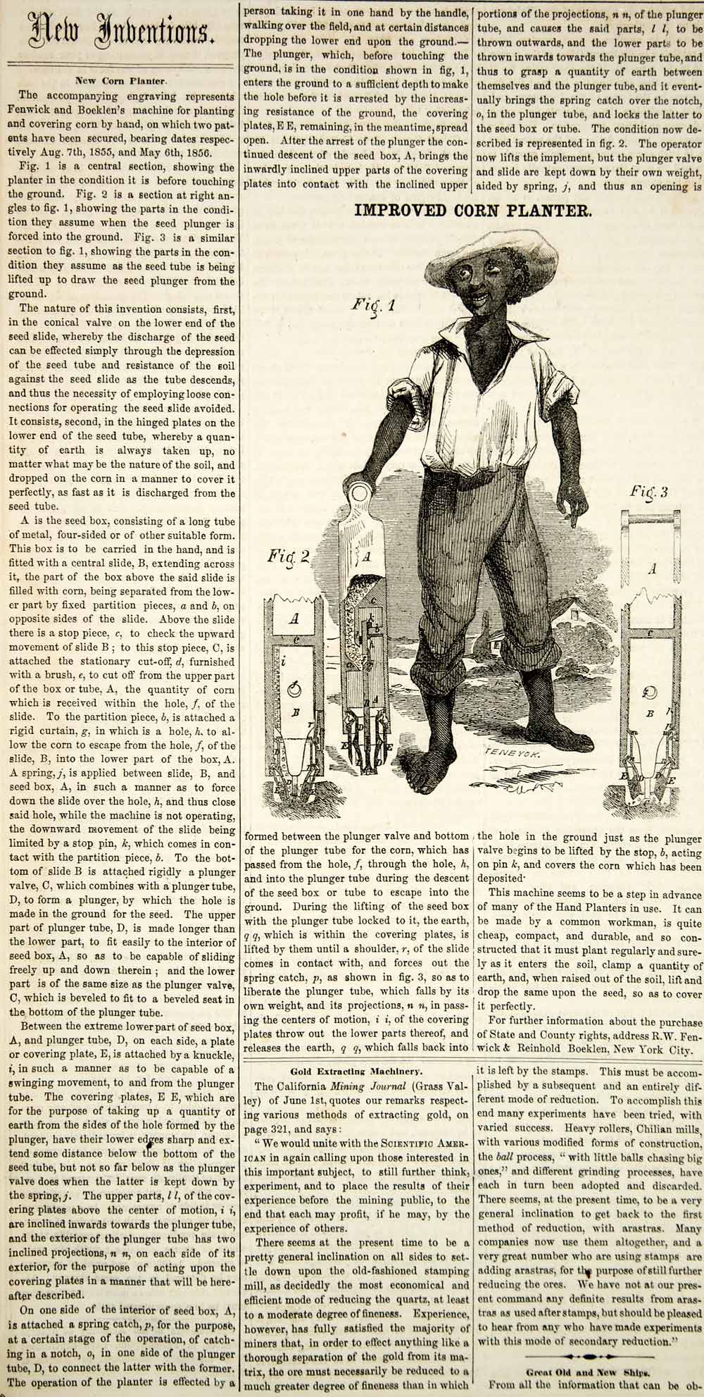1856 Wood Engraving Antique Hand Corn Planter Black Americana Farming Tool YSA2