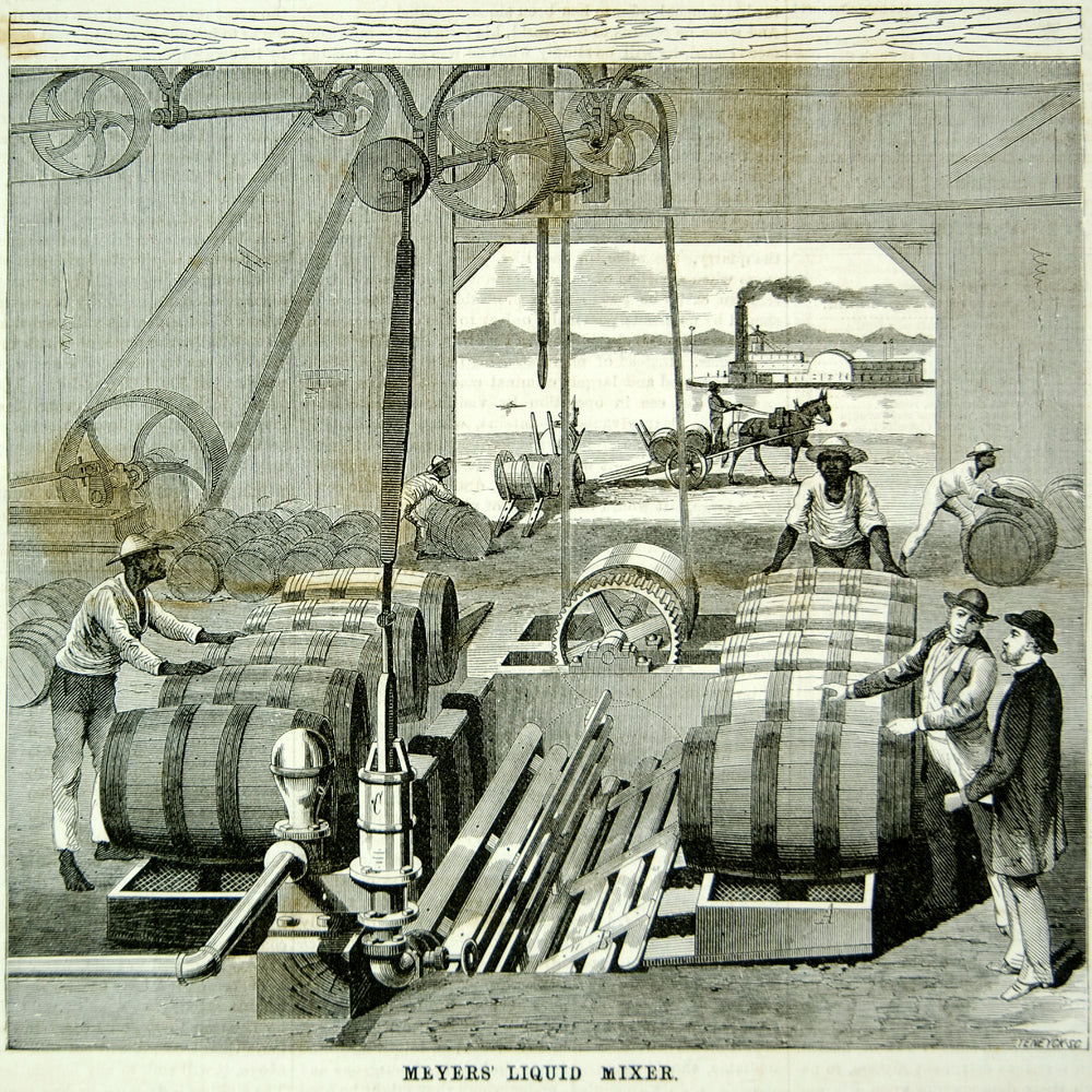 1875 Wood Engraving Molasses Mixer John B. Meyers New Orleans Invention YSA4