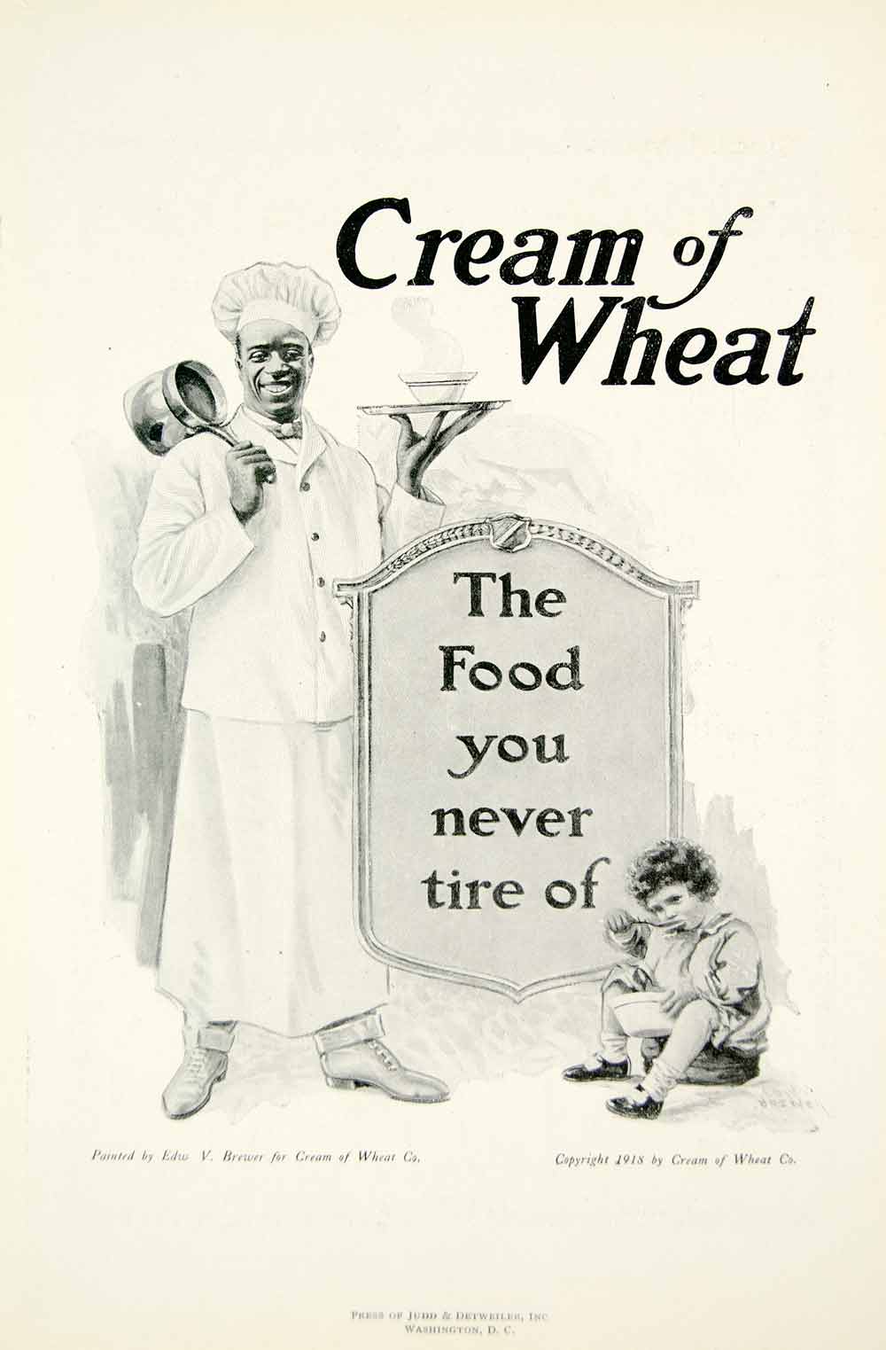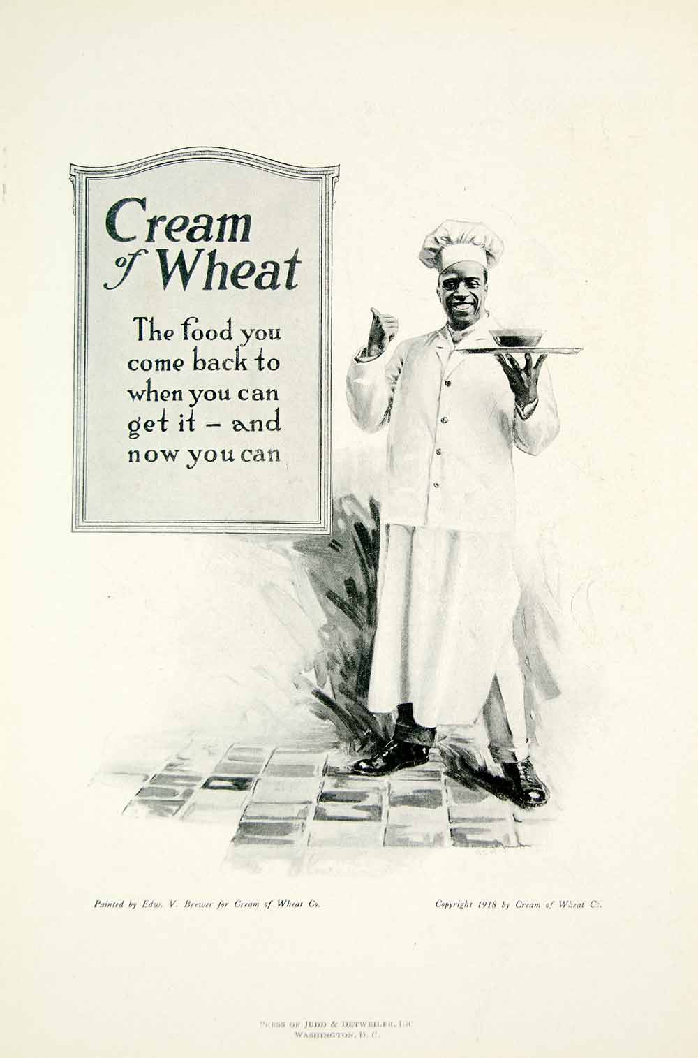 1918 Ad Cream of Wheat Cereal Food Rastus Chef Jacket Edward V. Brewer Art YNG3