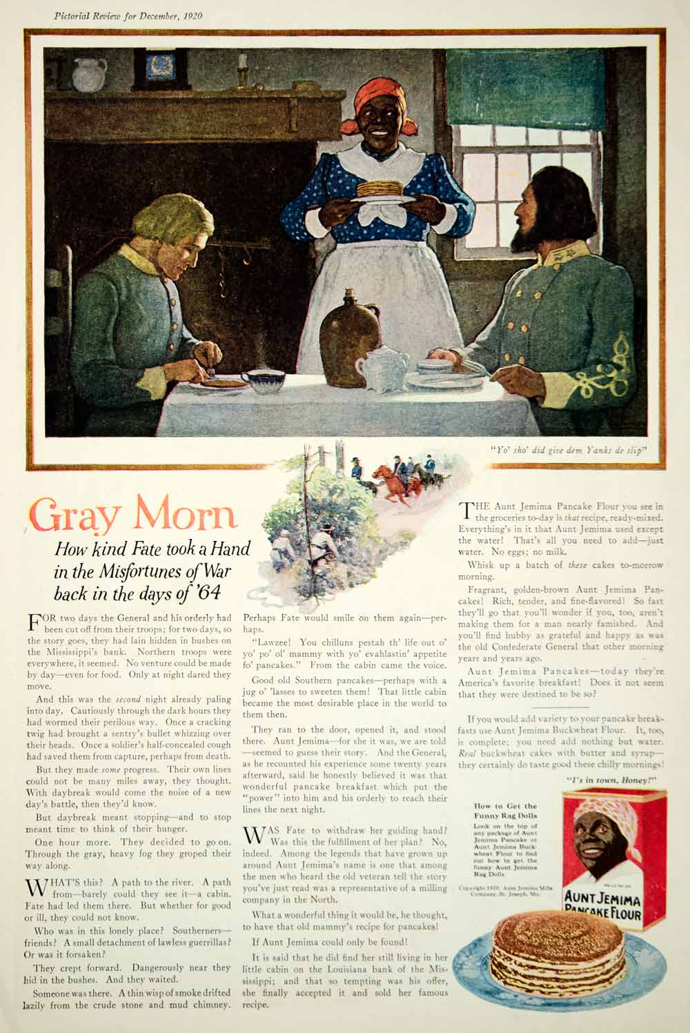 1920 Ad Vintage Aunt Jemima Pancake Flour Black Americana Civil War Confederates
