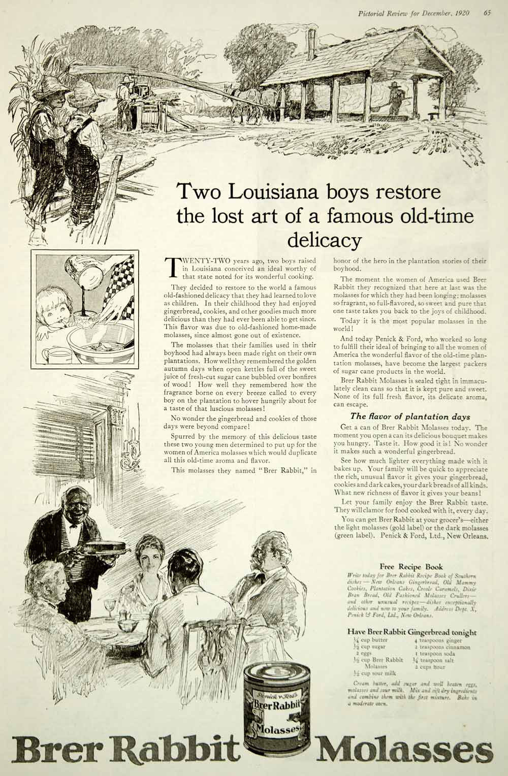 1920 Ad Brer Rabbit Molasses Sweetener History Black Americana Penick & Ford Can