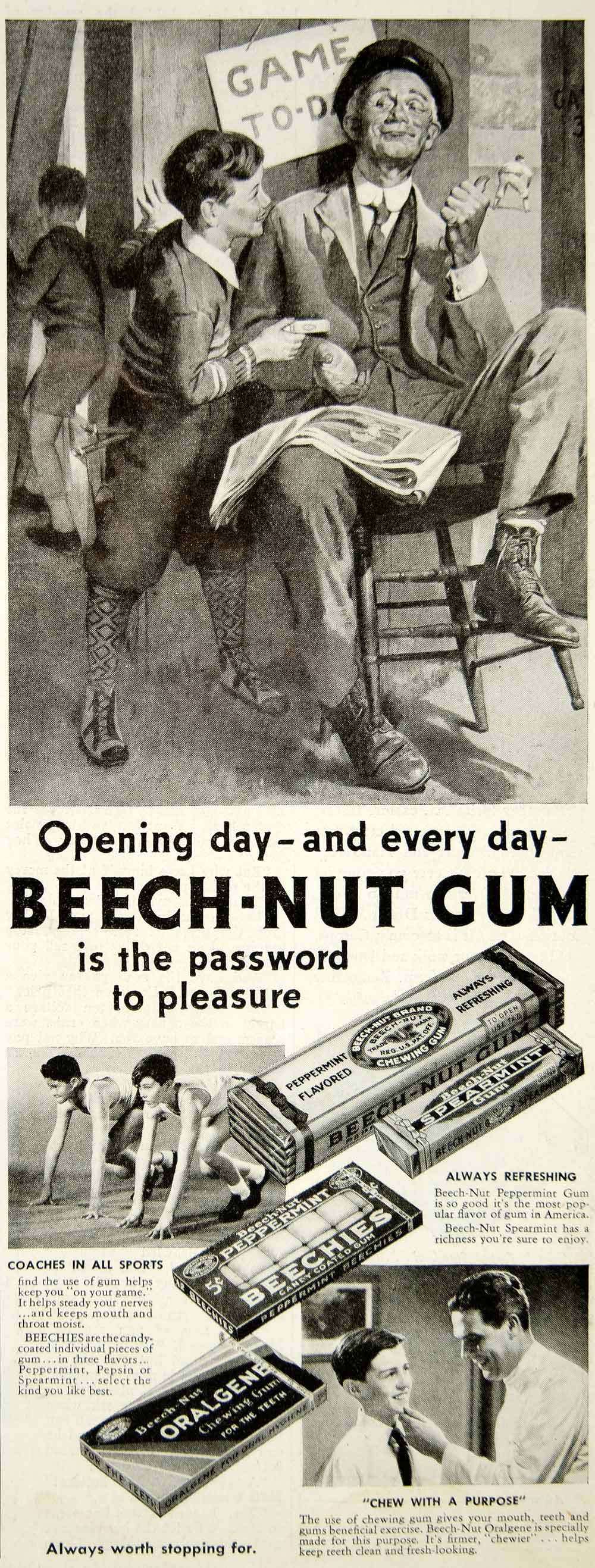 1938 Ad Beech Nut Chewing Gum Candy Oralgene Dentist Baseball Track & Field YAB3