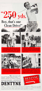 This is an original 1938 black and white with color print ad for Dentyne chewing gum from the American Chicle Company, 30-32 Thomson Avenue, Long Island City, NY.