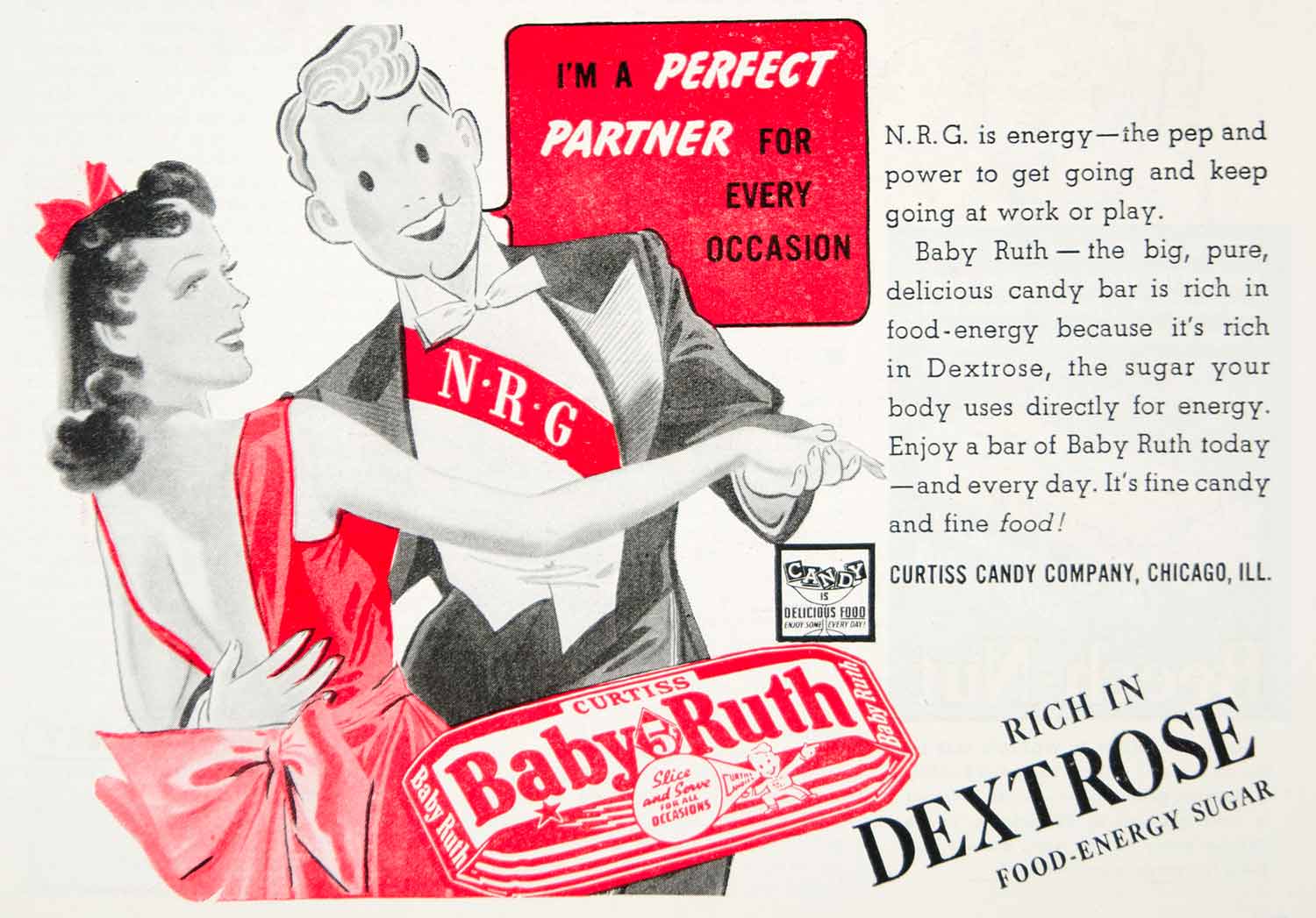 1939 Ad Vintage Baby Ruth Candy Bar Curtiss Dextrose Sugar Dancing Dancers YHS1