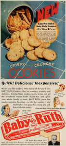 This is an original 1942 color print ad for Curtiss Candy Baby Ruth Cookies