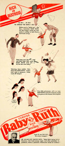 This is an original 1942 two-color print ad for the Baby Ruth Candy Bar featuring the famous Dionne Quintuplets and their baby doctor, Dr. Allan Roy Dafoe.