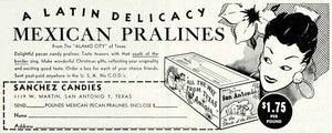 1948 Ad Mexican Pralines Alamo City Texas Sanchez Candy Pecan San Antonio HDL2