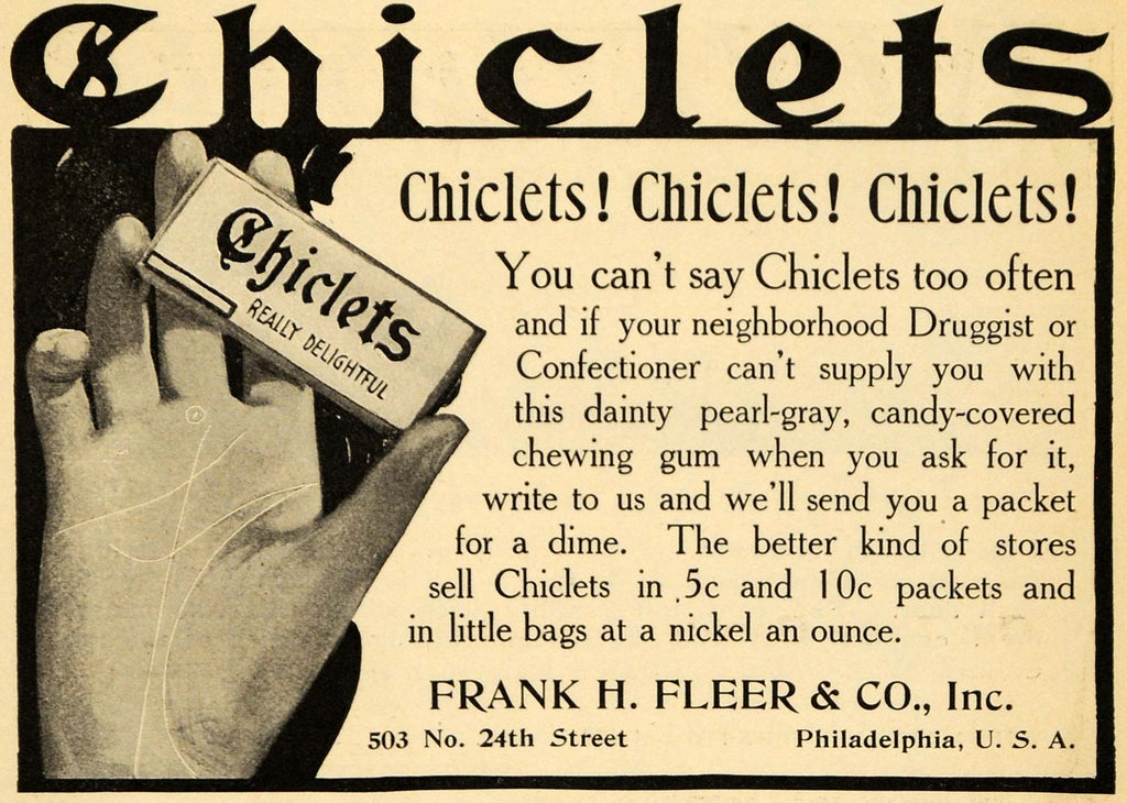1907 Ad Frank H. Fleer Chiclets After Dinner Mint Gum - ORIGINAL ADVERTISING GH3