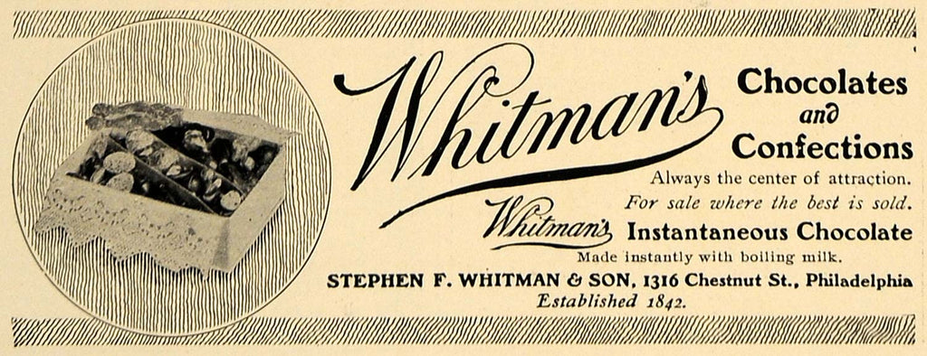 1906 Ad Stephen Whitman Chocolates Confections Sweets - ORIGINAL ADVERTISING CL8