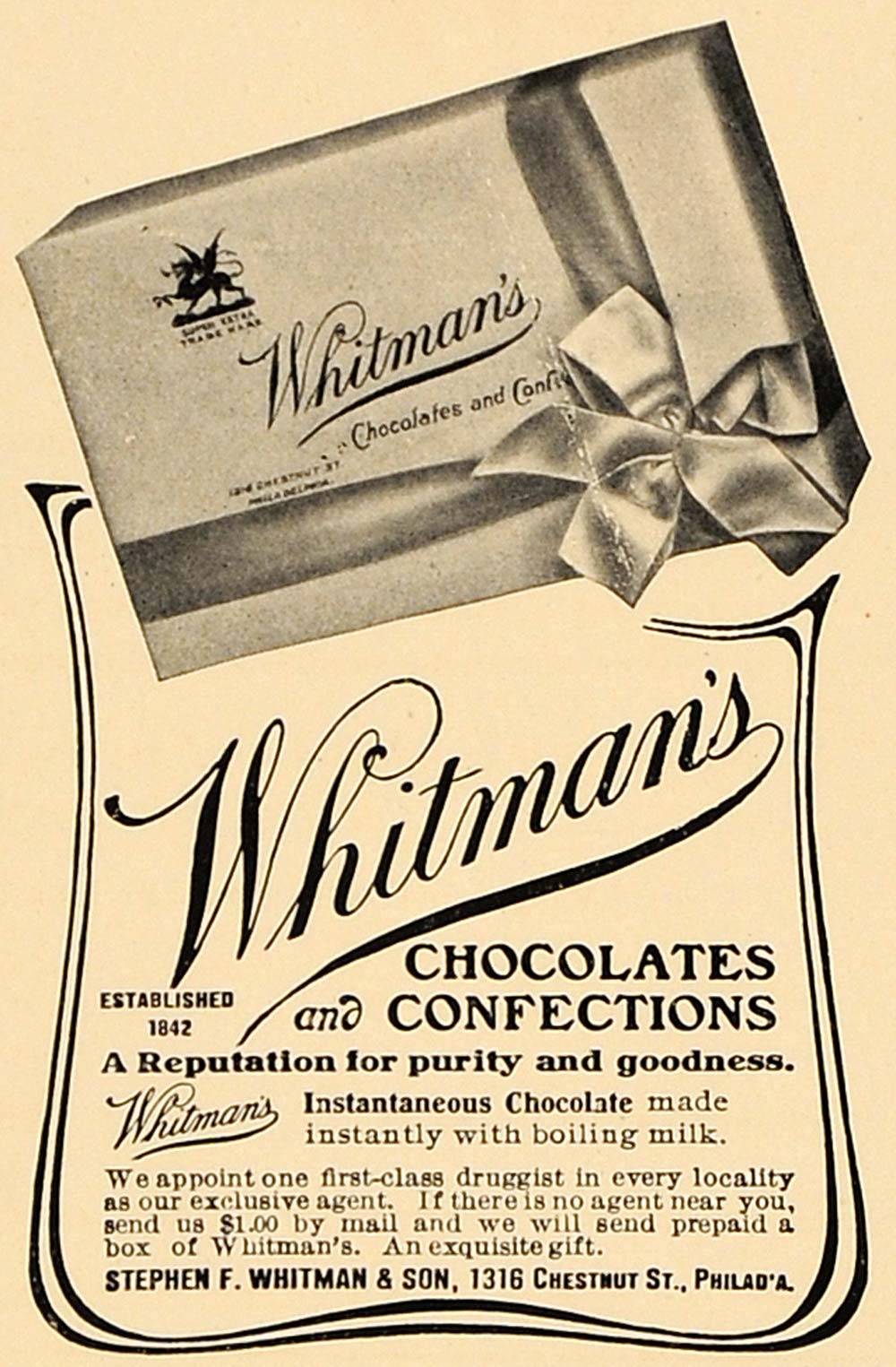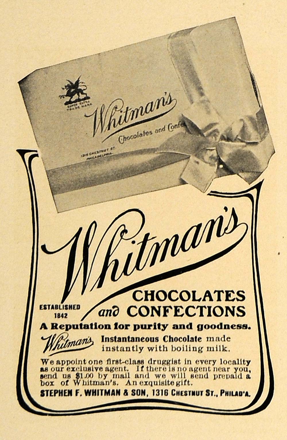 1907 Ad Whitman's Chocolates Confections Stephen F. - ORIGINAL ADVERTISING CL4