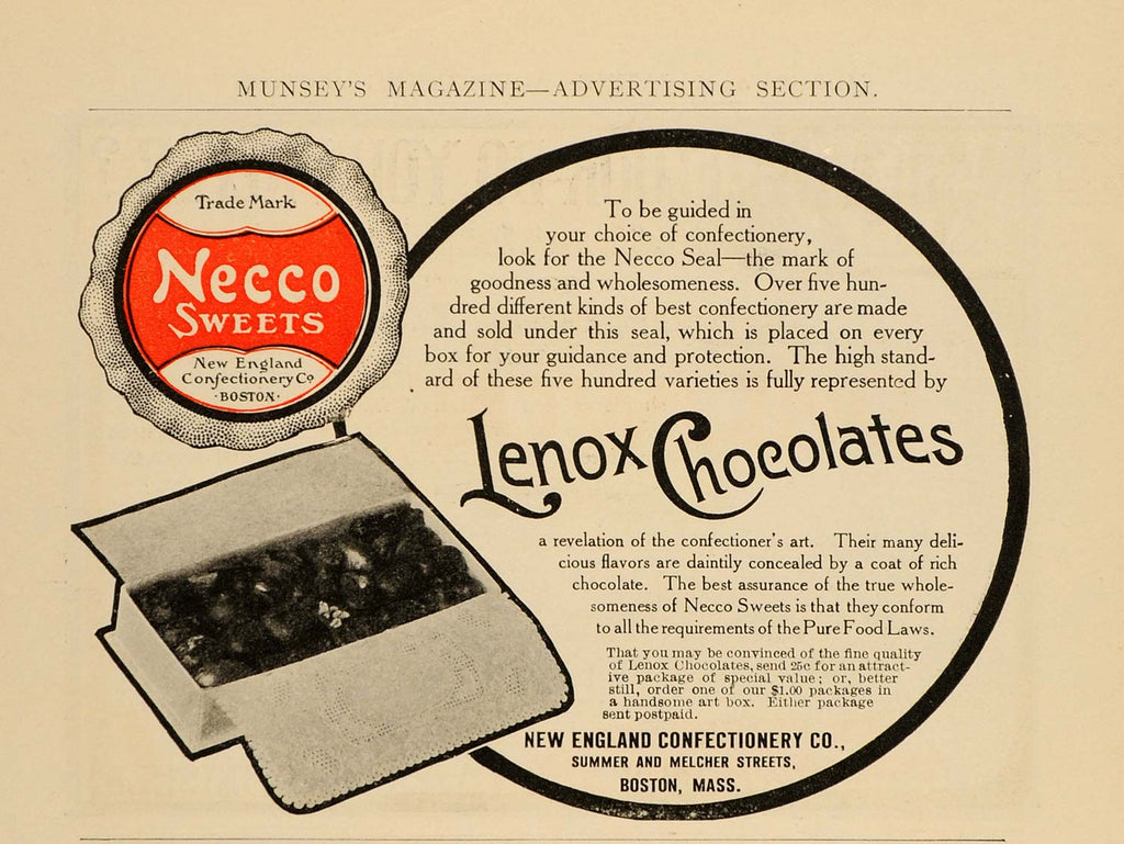 1907 Ad New England Necco Sweets Lenox Chocolates Box - ORIGINAL ADVERTISING CL4